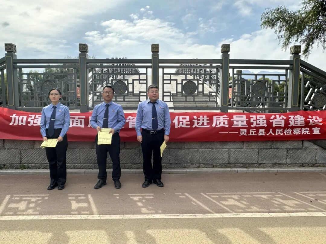 为深入贯彻落实习近平总书记关于食品安全的重要指示精神,2025年9月28日上午灵丘县人民检察院干警以维护食品药品安全、打击假冒伪劣产品为主题,在灵丘县唐河公园、迎宾社区开展“加强全面质量管理,促进质量强国建设”专题质量宣传月活动。